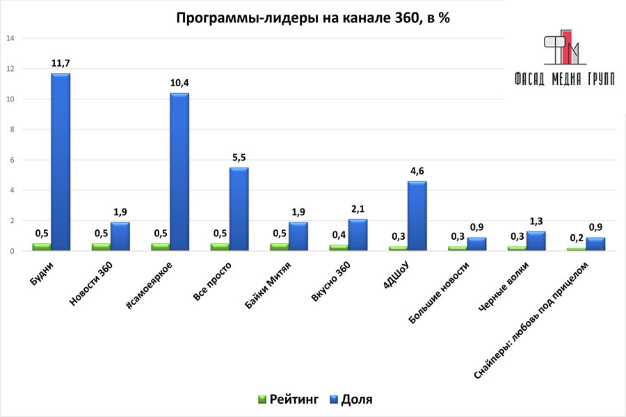 Рейтинг (англ. rating) – числовой или порядковый показатель, отображающий важность или значимость определенного объекта или явления. Начало 2015 г. стало прорывным для телеканала «360°».