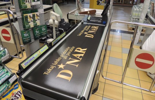 Пример рекламы на ленте в супермаркетах: